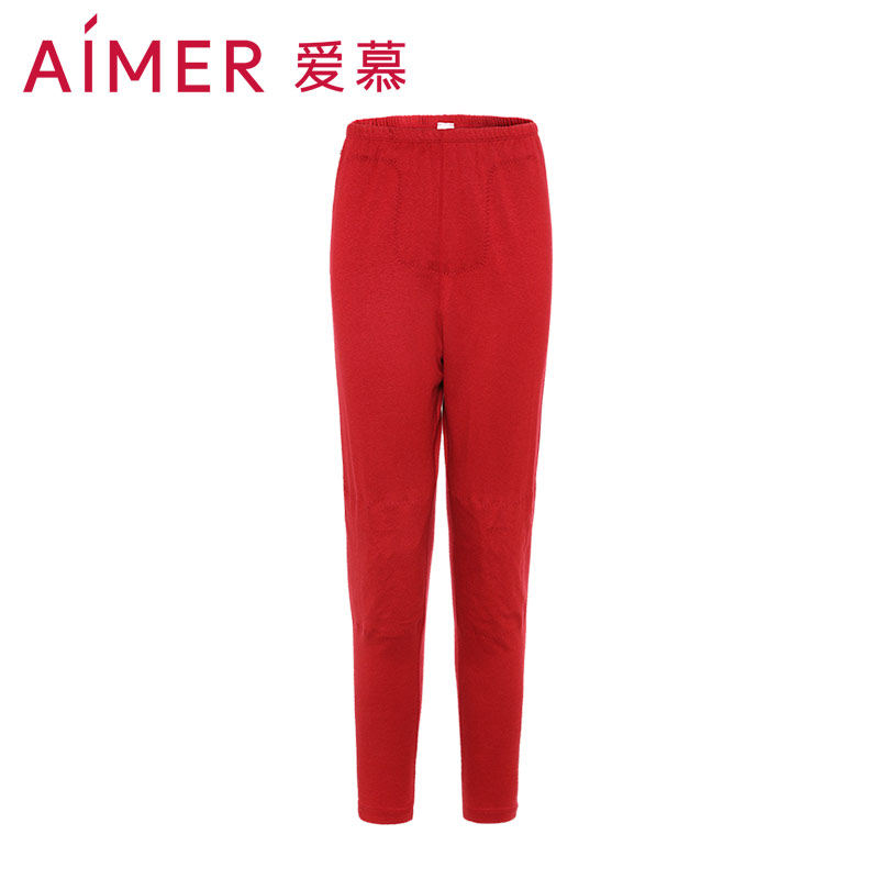 爱慕官方正品暖暖悠享女士保暖裤单层红色中厚长裤AM736381
