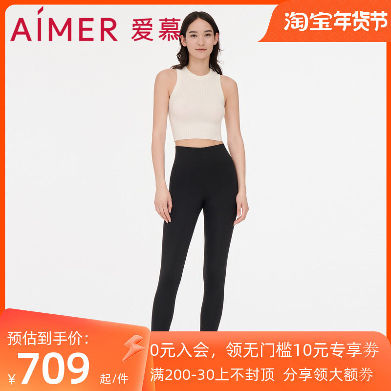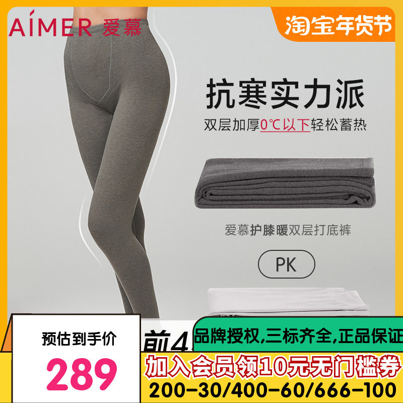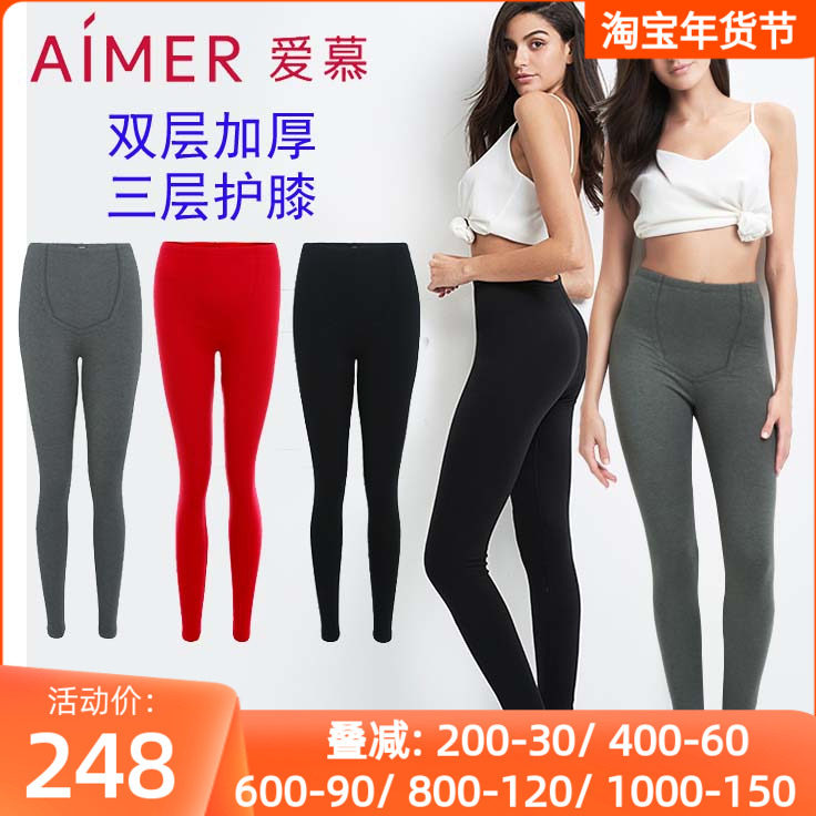aimer爱慕加热裤系列女士加厚护膝护腰寒冬保暖长裤AM822221