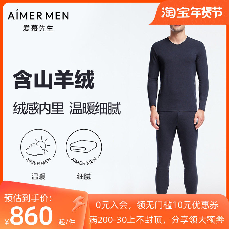 爱慕先生燚暖衣系列-净痕柔软舒适男士含羊绒保暖衣长裤NS73J271