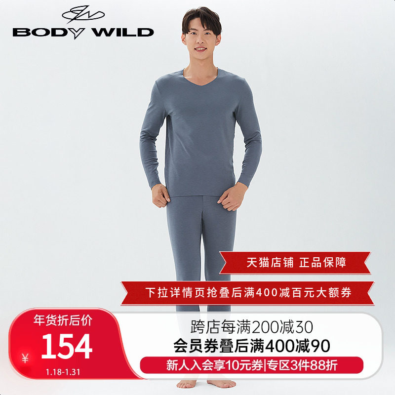 BODY WILD23新款热粒暖衣双层包腰长裤男士保暖秋裤ZBN73ZD6