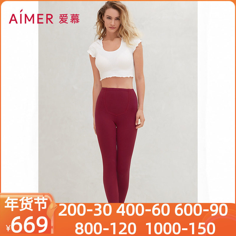 爱慕官方特价乎兮中厚打底裤保暖一体织秋裤高弹不静电高腰长裤女