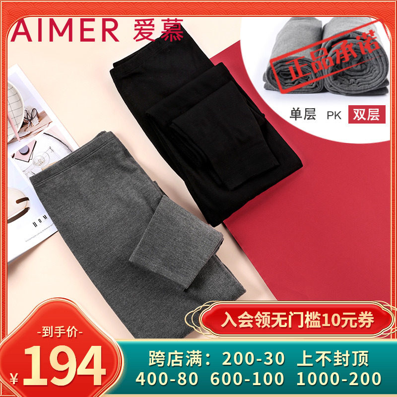 aimer爱慕保暖内衣轻绒双层保暖长裤冬季修身打底裤AM733832