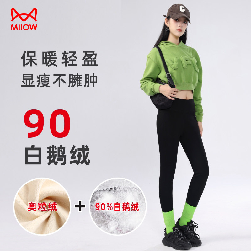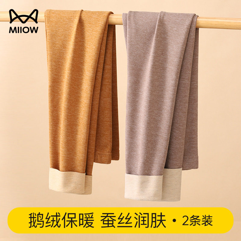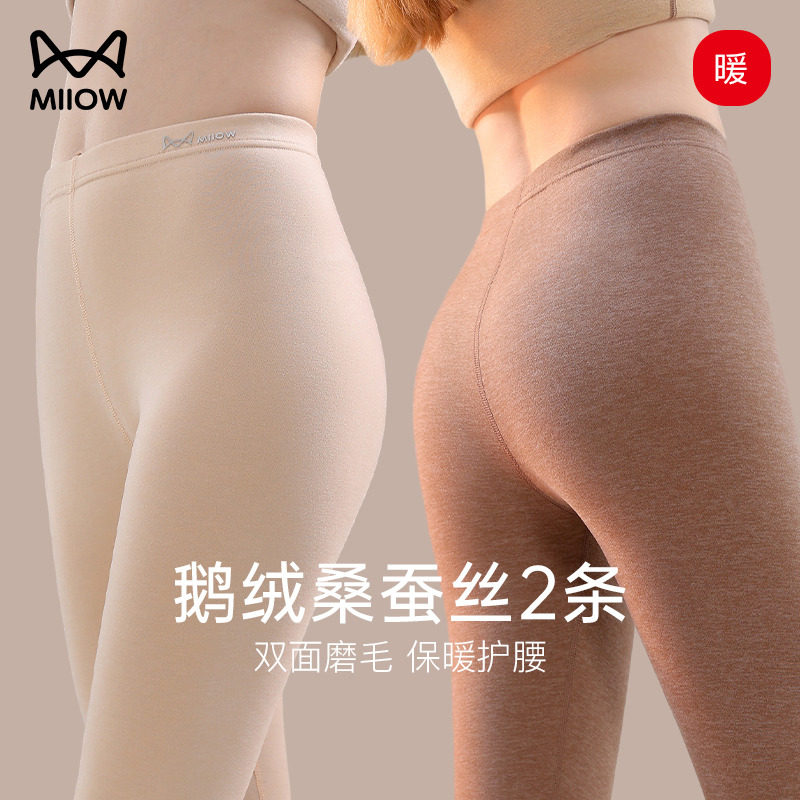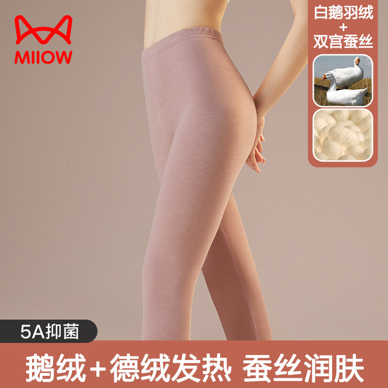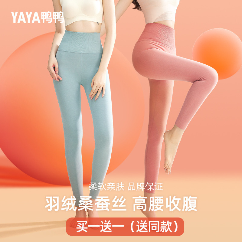 yaya鸭鸭内衣旗舰店冬季羽绒桑蚕丝修身显瘦高腰收腹打底保暖裤