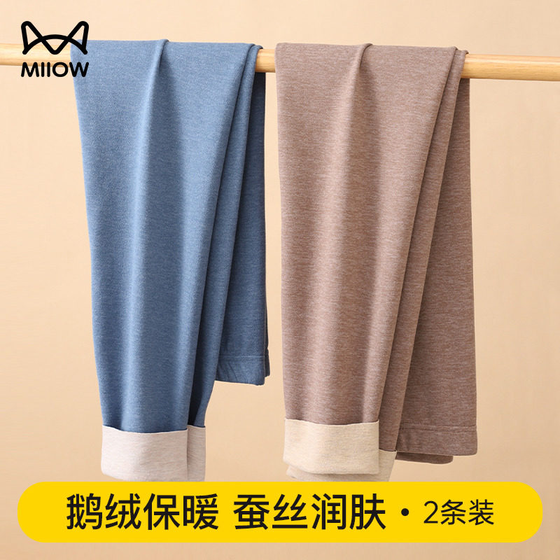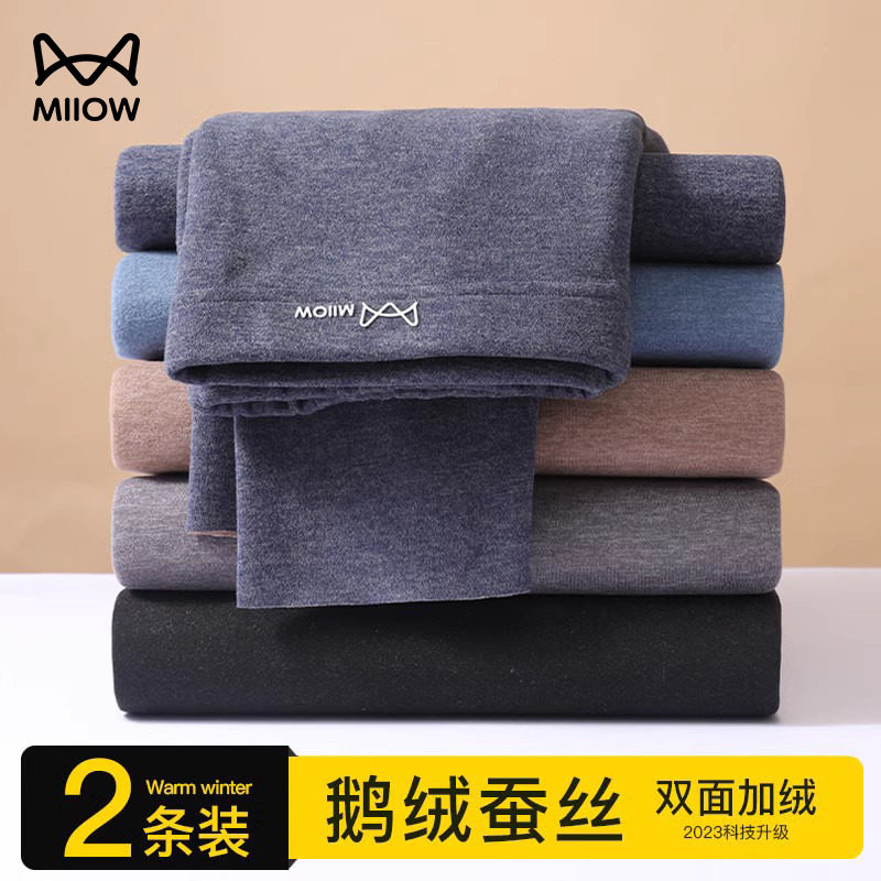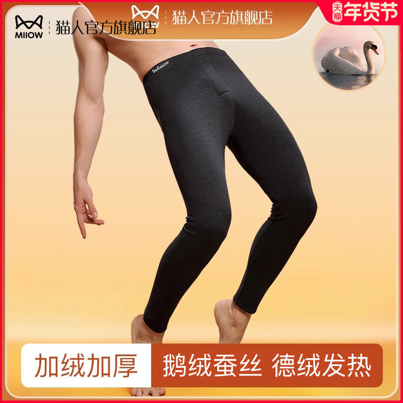 猫人加绒秋裤男士冬季鹅绒护膝防风大码打底棉毛裤加厚保暖裤男款