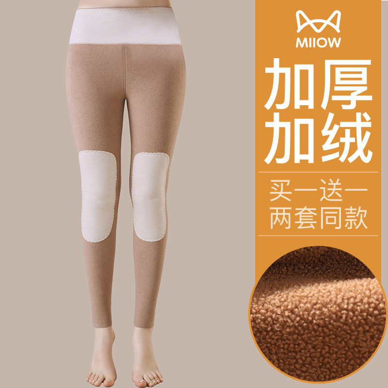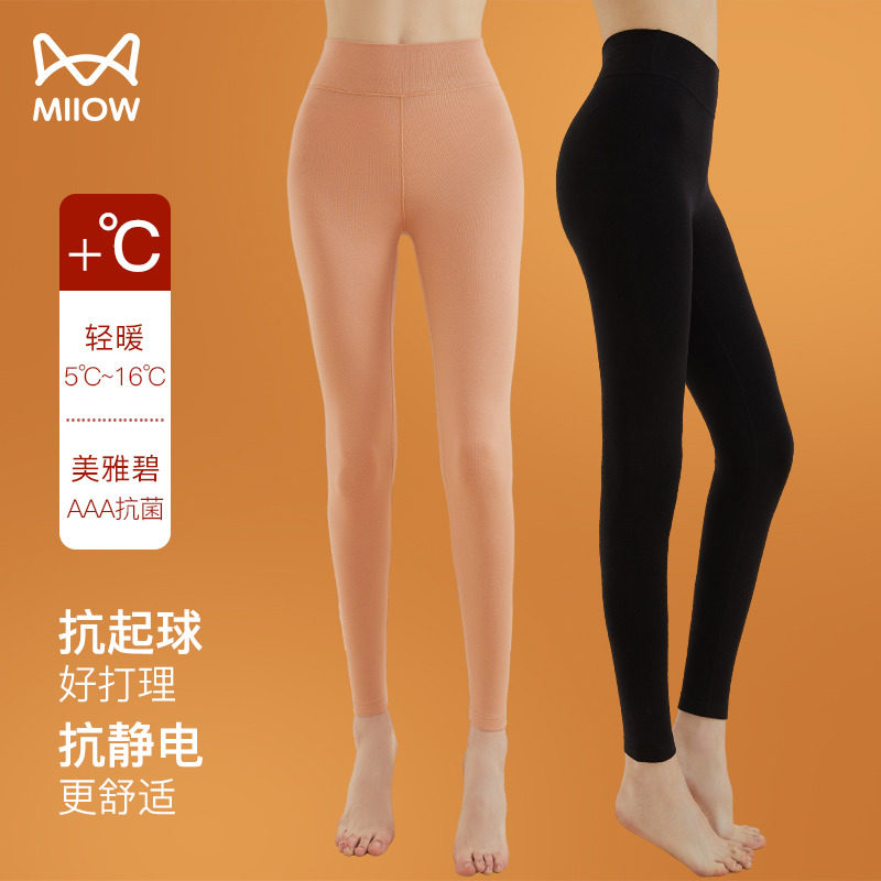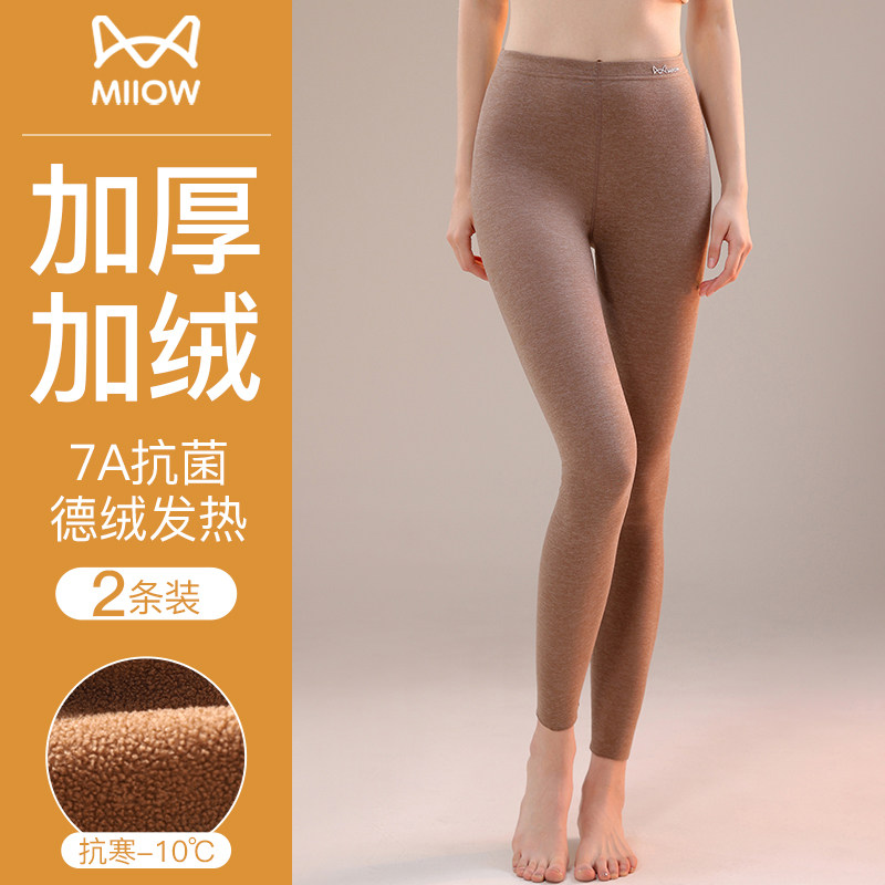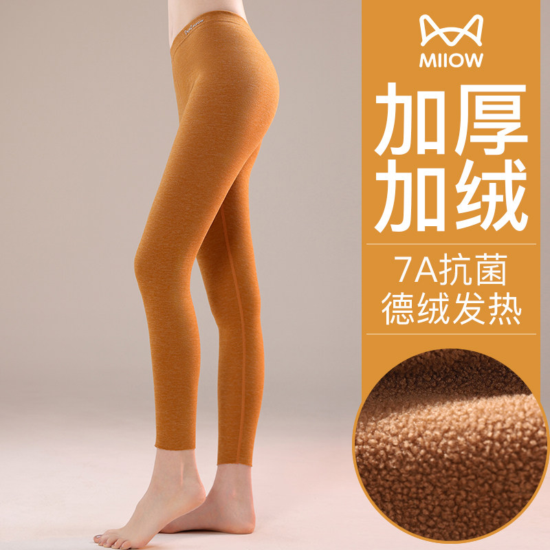 猫人德绒秋裤女薄款高腰加绒打底秋衣发热美雅碧衬裤秋冬季保暖裤