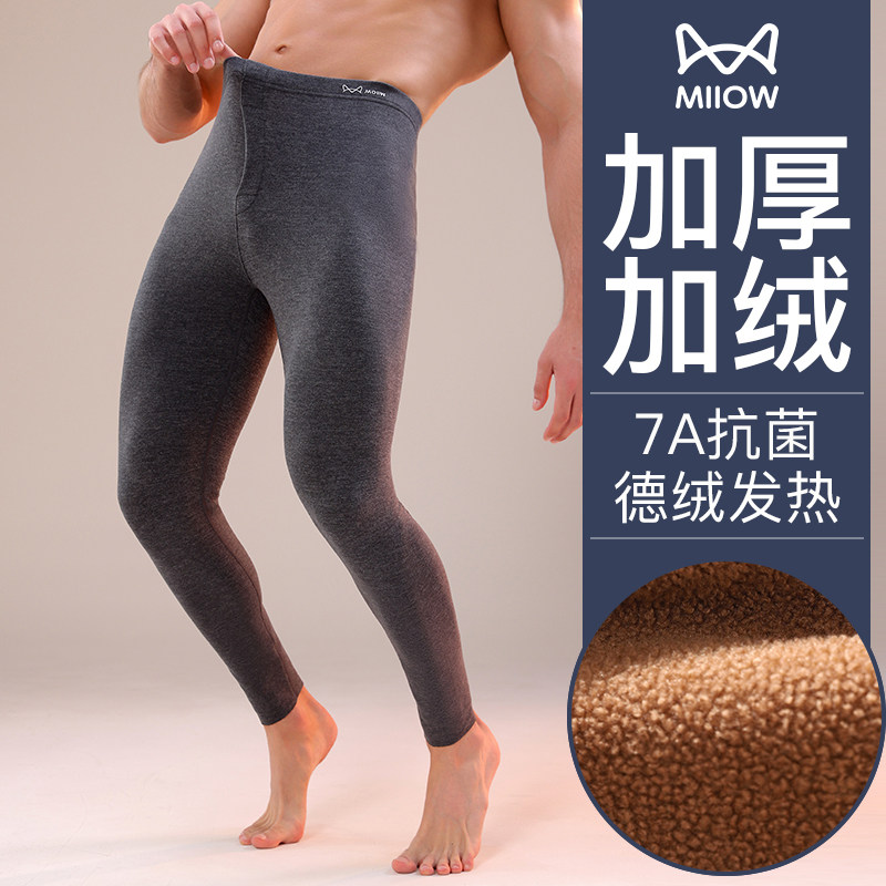 猫人男士保暖裤德绒发热抑菌秋裤打底裤秋冬季棉毛裤线裤薄绒棉裤