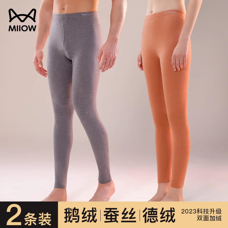 猫人德绒发热保暖裤男士秋裤无痕薄款绒裤女款内穿打底裤衬裤冬季