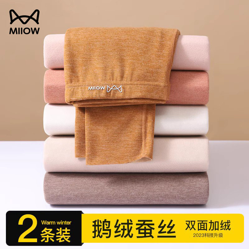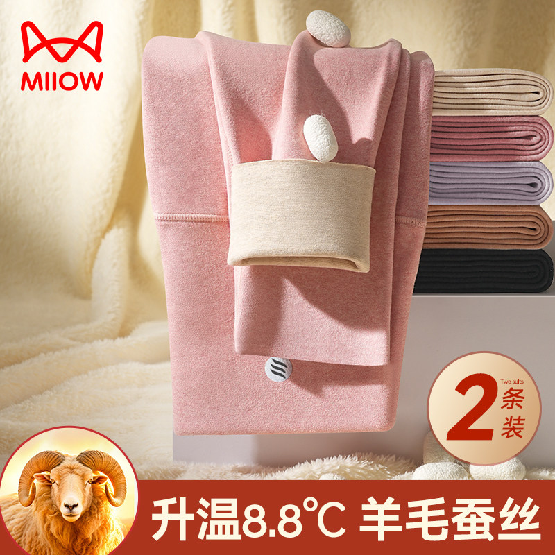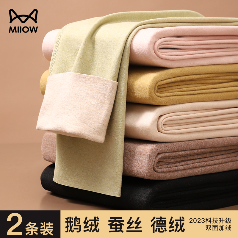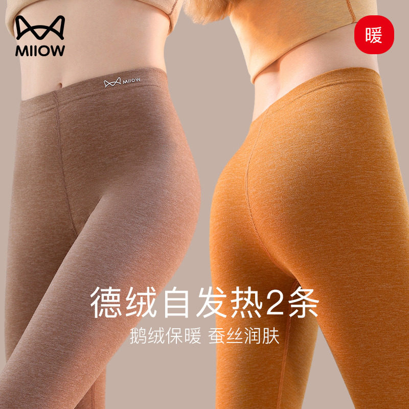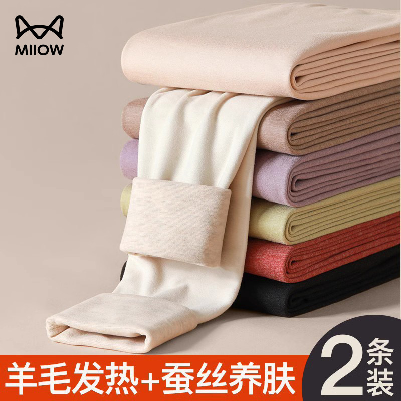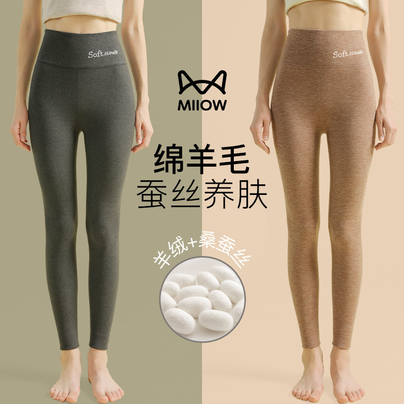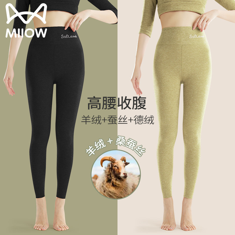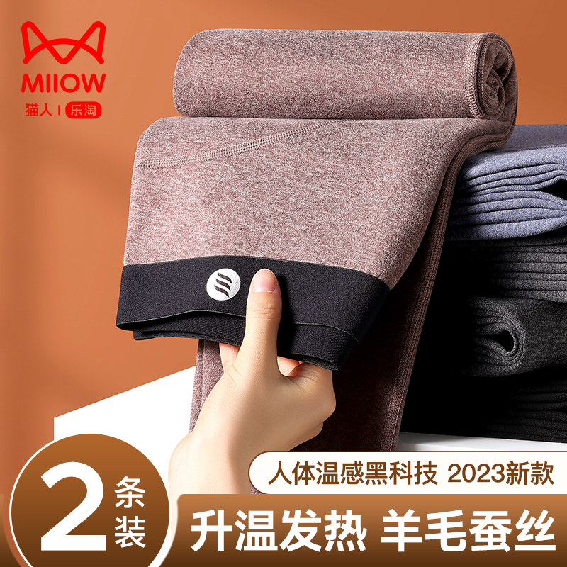猫人秋裤女2023新款德绒发热羊毛蚕丝加厚大码紧身打底保暖裤冬季