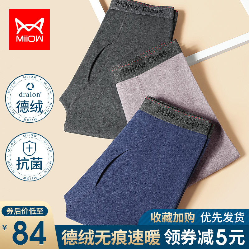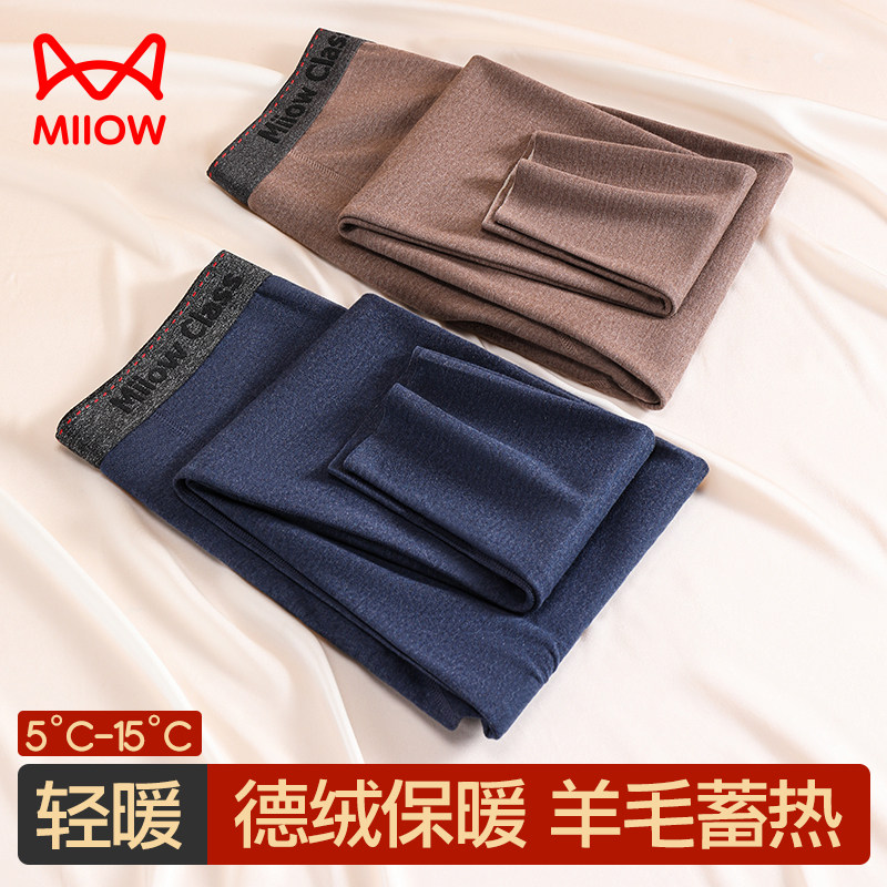 猫人男士德绒发热保暖裤冬季加绒加厚无痕打底秋裤绒裤衬裤棉毛裤