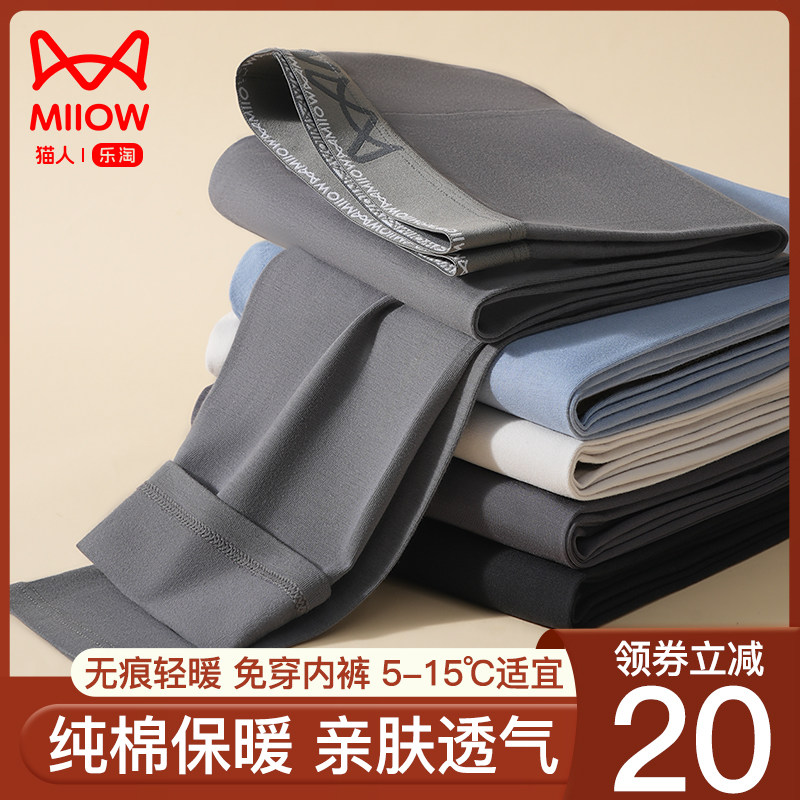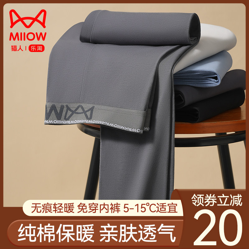 猫人秋裤男士磨毛无痕发热恒温薄款秋冬季打底线裤衬裤保暖裤男