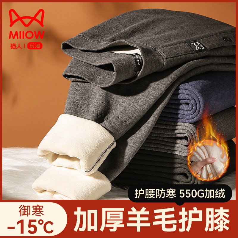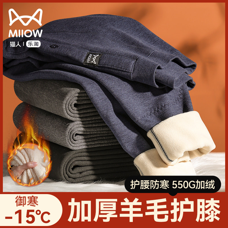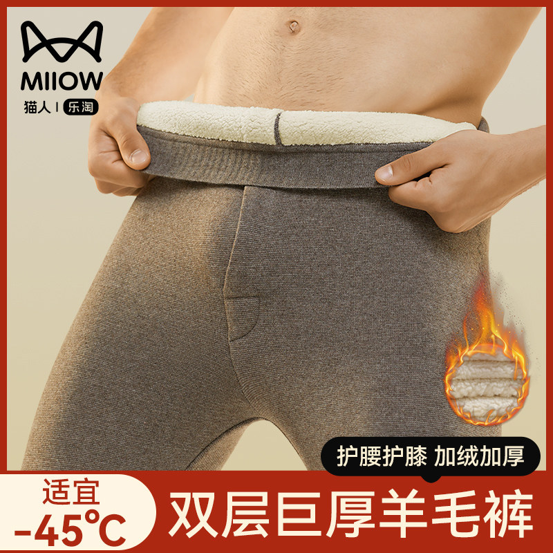 猫人保暖裤男士冬季加绒加厚含羊毛双层护膝羊羔绒打底棉毛裤男款