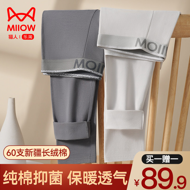 猫人保暖裤男士秋裤男款棉裤打底裤内穿冬季加绒羊毛无痕薄款绒裤