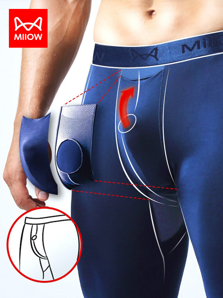 猫人纯棉秋裤男士免穿内裤二合一打底裤枪弹分离薄款保暖紧身性感