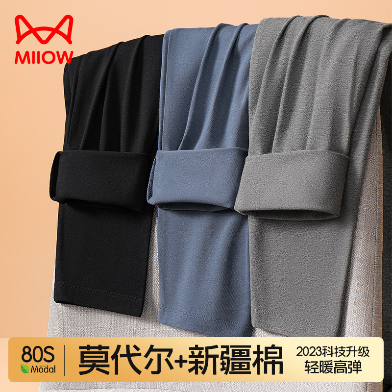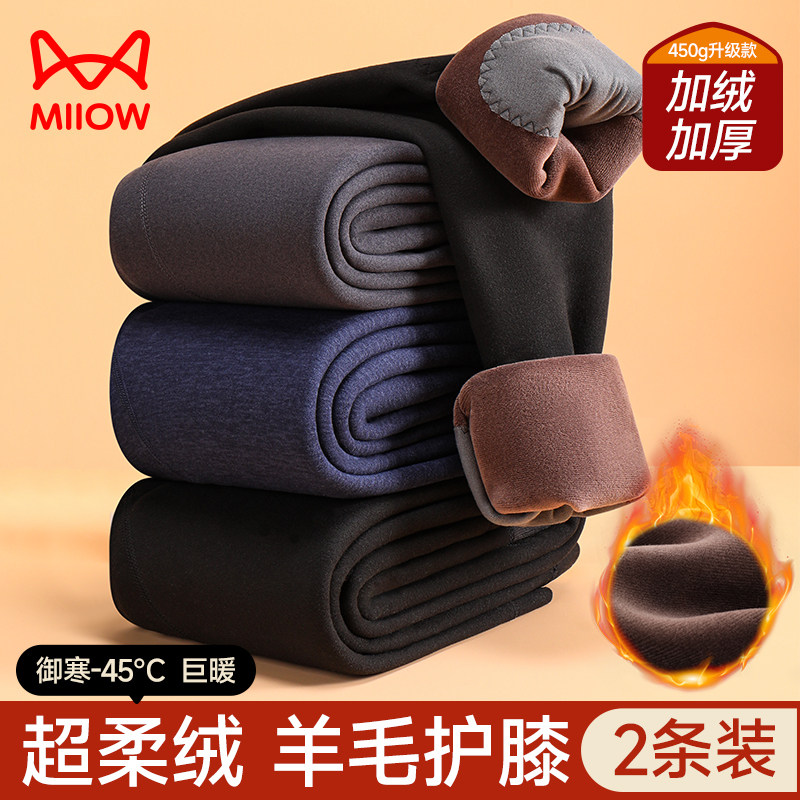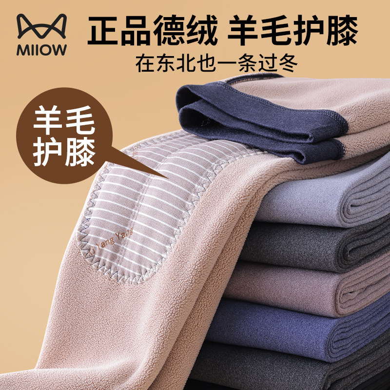 猫人男士保暖裤男冬季加绒加厚羊毛护膝裤2023新款秋裤男款打底裤