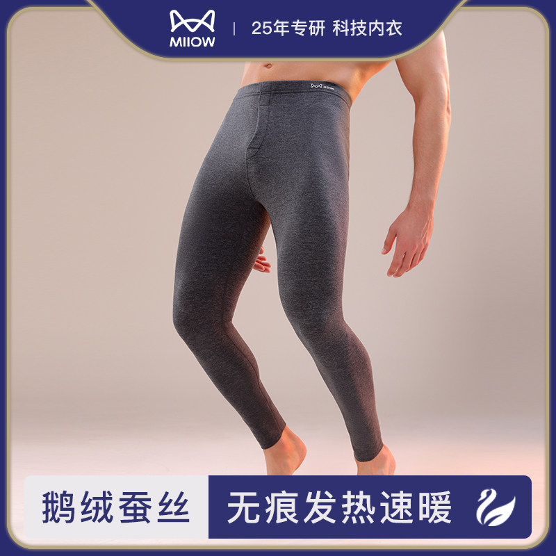 猫人男士德绒发热保暖裤秋冬季加绒加厚内穿秋裤蚕丝打底线裤绒裤