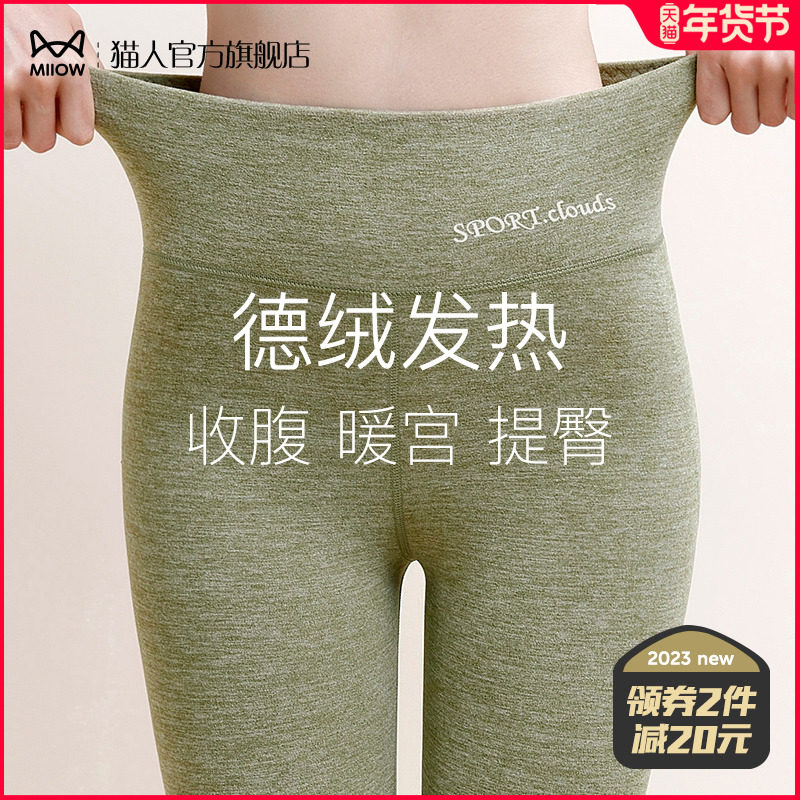 猫人秋裤女2023新款冬季德绒发热高腰无痕打底线裤内穿女士保暖裤