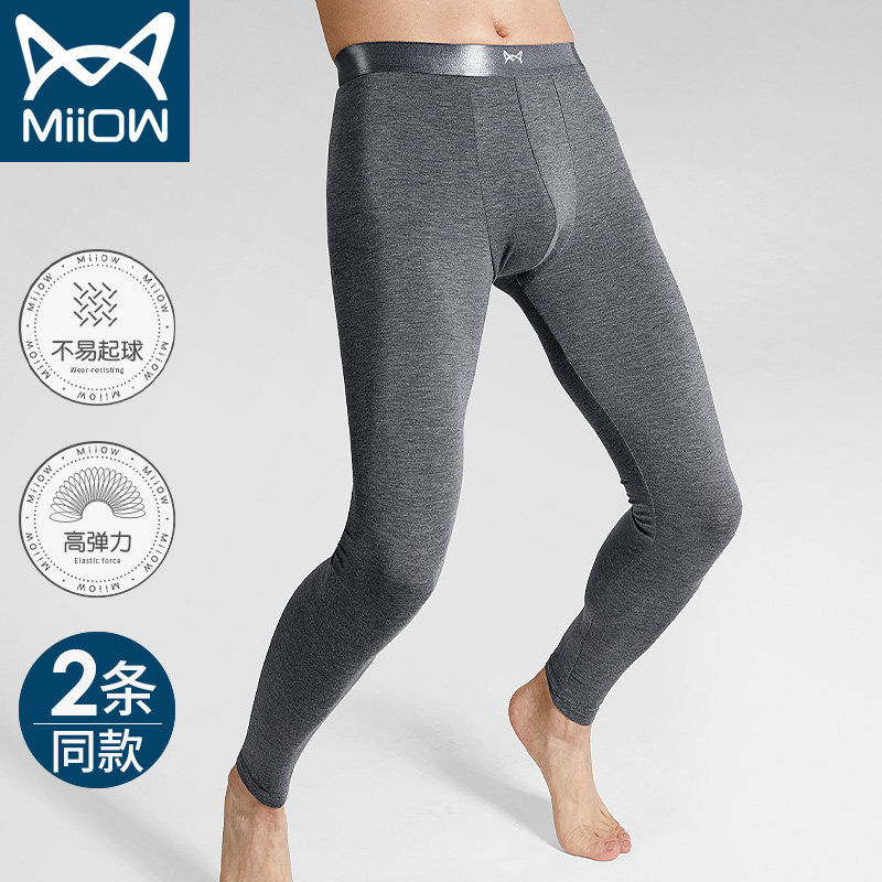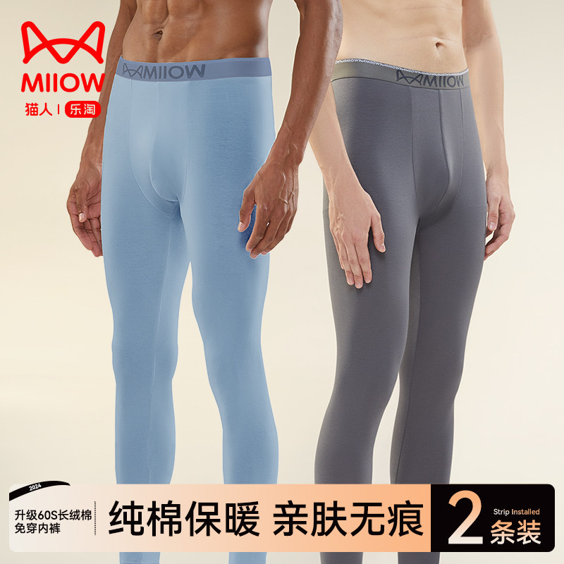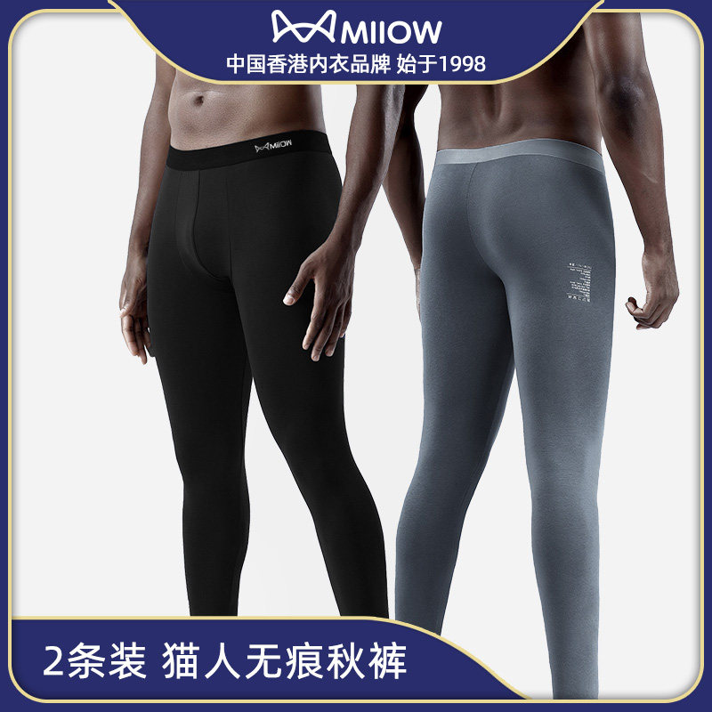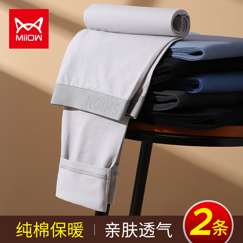 猫人单条男士秋裤男薄款纯棉两件装保暖裤透气修身线裤秋冬打底裤