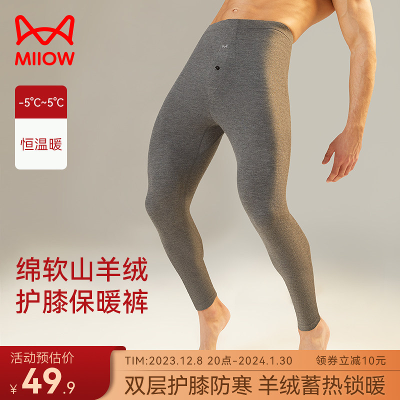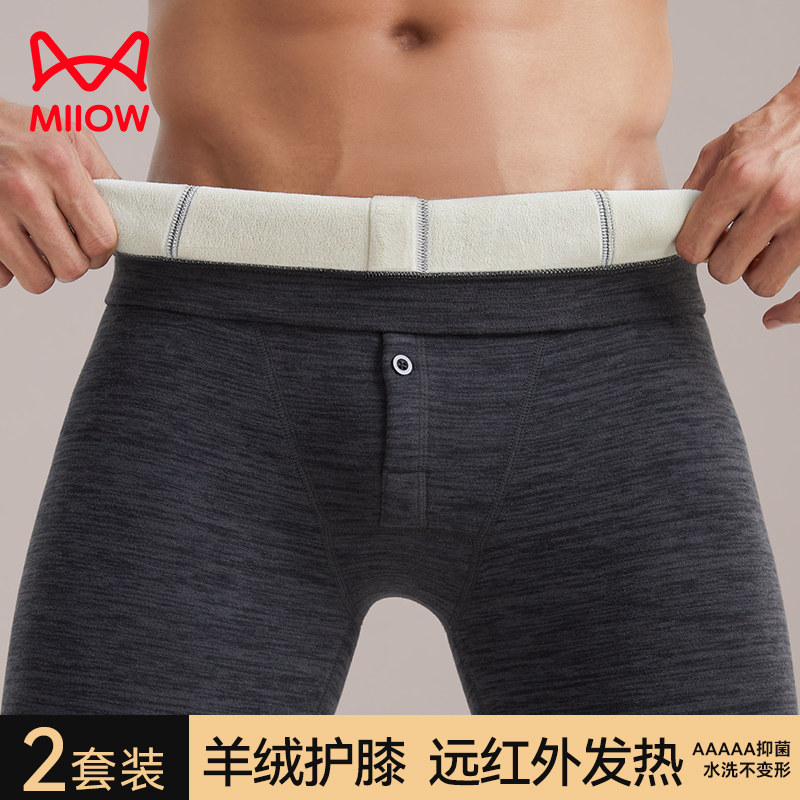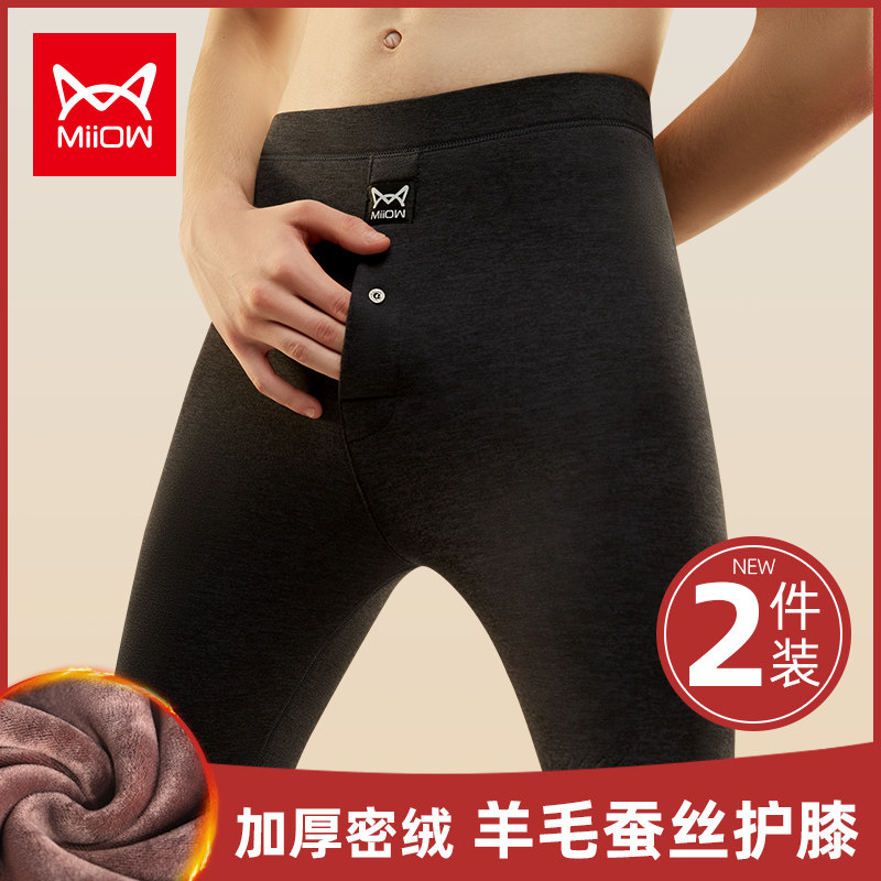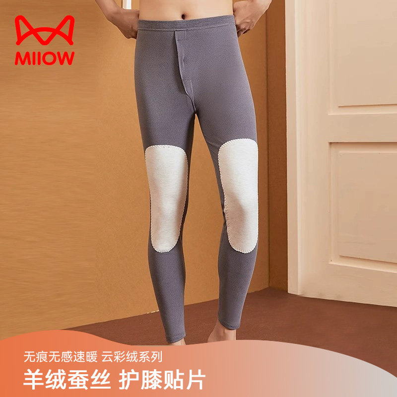 猫人云彩绒护膝保暖裤男士冬季羊毛蚕丝加绒加厚打底舒适秋裤男款