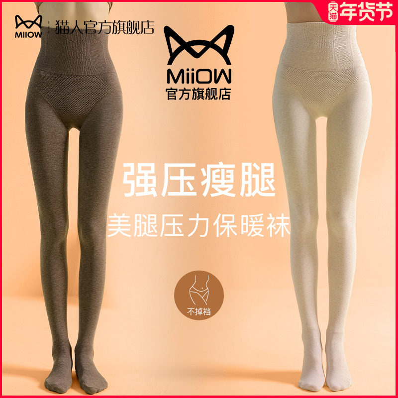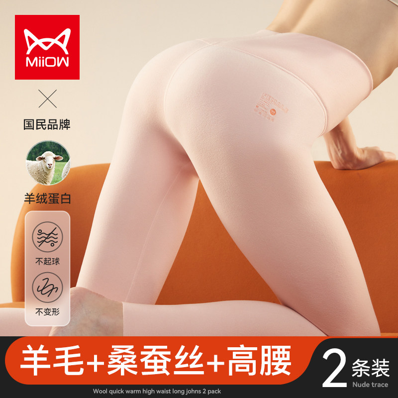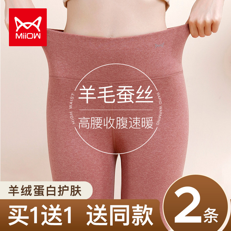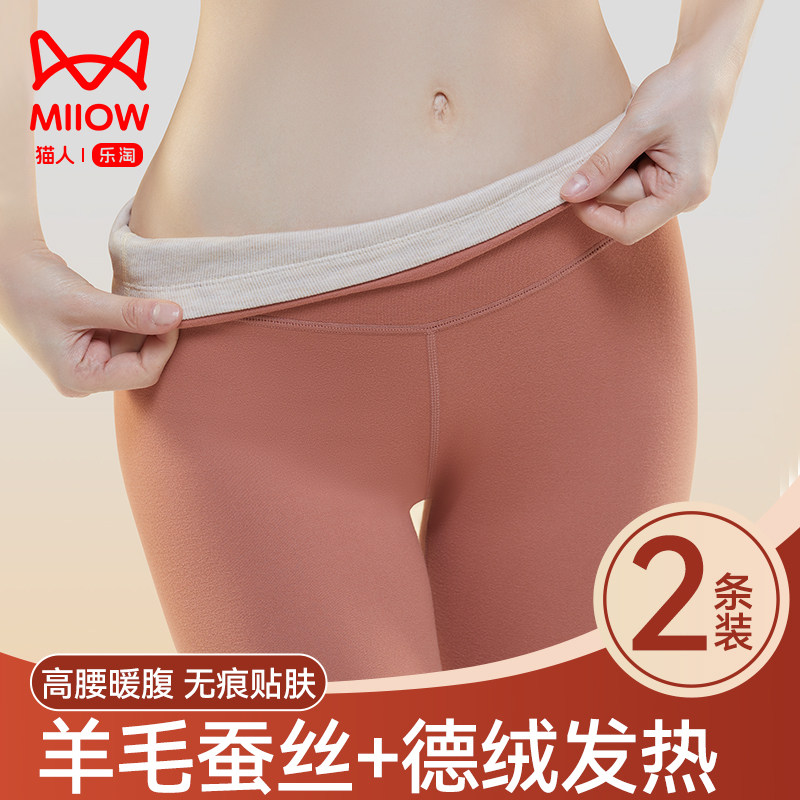 猫人高腰保暖裤女士秋裤含蚕丝羊毛裤收腹美体内穿无痕打底裤冬季