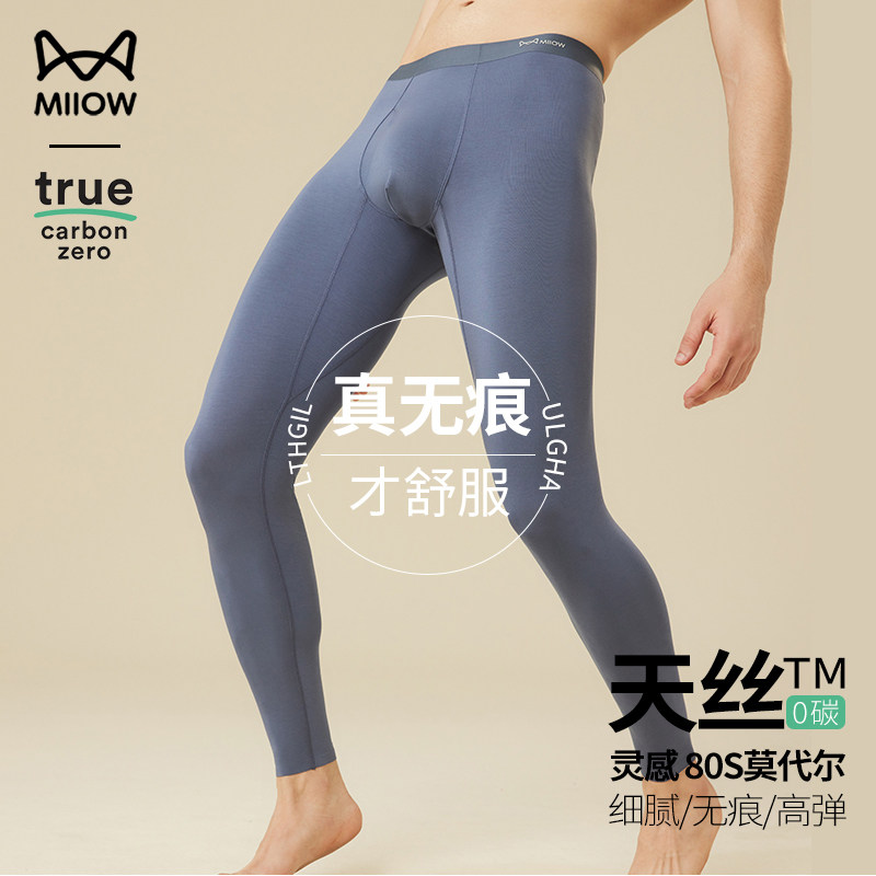 猫人莫代尔秋裤男内穿线裤春秋无痕潮流超薄款打底裤棉毛裤保暖裤