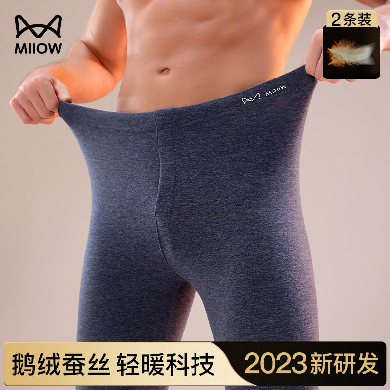 猫人秋裤男士纯棉薄款秋冬紧身大码打底棉毛线裤2023新款保暖裤男