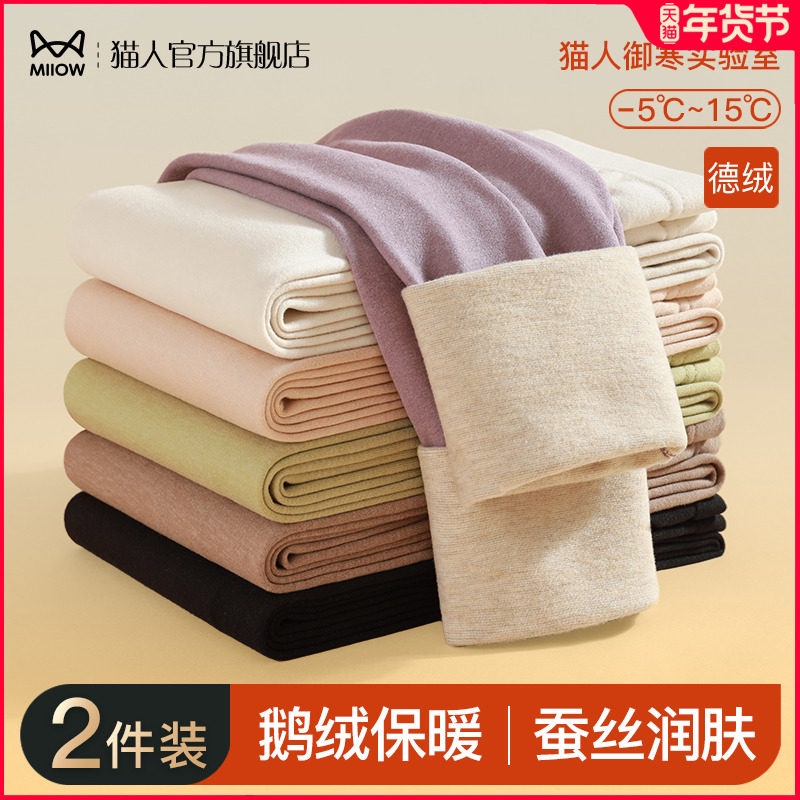 猫人无痕秋裤女士打底保暖加绒德绒蚕丝纯棉毛裤内穿2023新款冬季