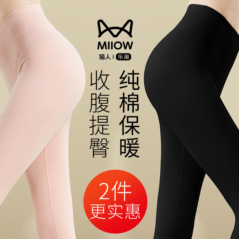 猫人秋裤女薄款纯棉内穿打底秋冬季保暖衬裤线裤棉毛大码女士秋裤