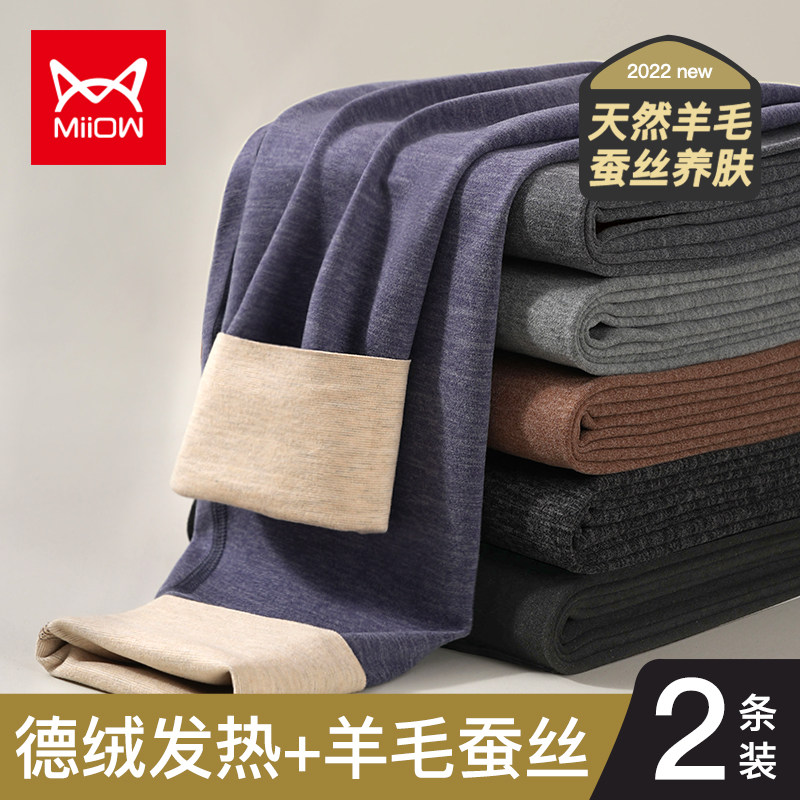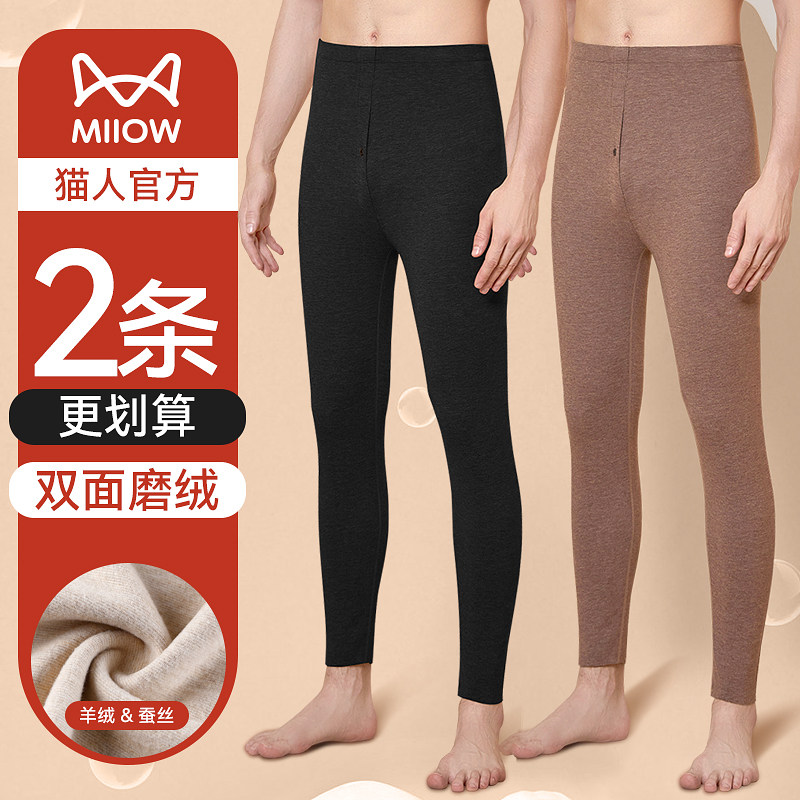 猫人男士保暖裤男款加绒加厚冬季发热羊毛蚕丝打底衬裤棉毛秋裤男