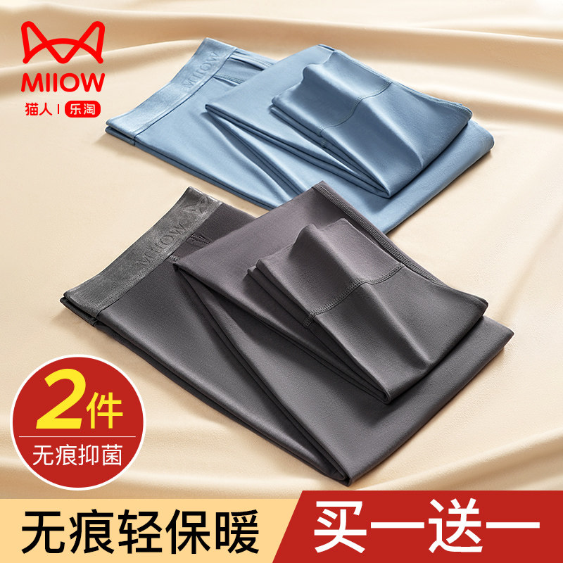 猫人2条装男士莫代尔棉秋裤超薄款打底棉毛裤衬裤线裤保暖裤春秋