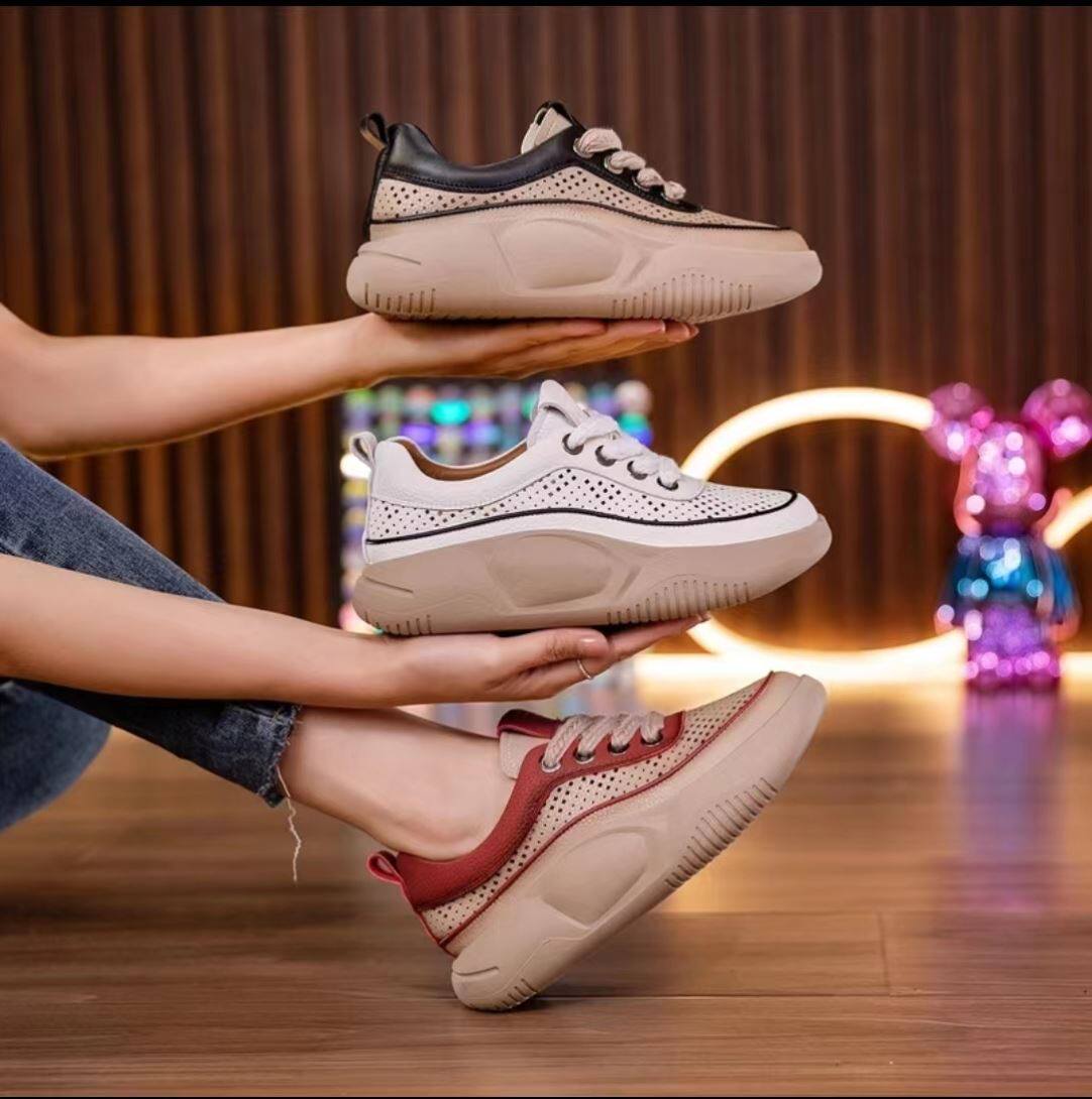KEKAFU/珂卡芙2023夏季新款透孔休闲鞋透气软底软面真皮复古女鞋
