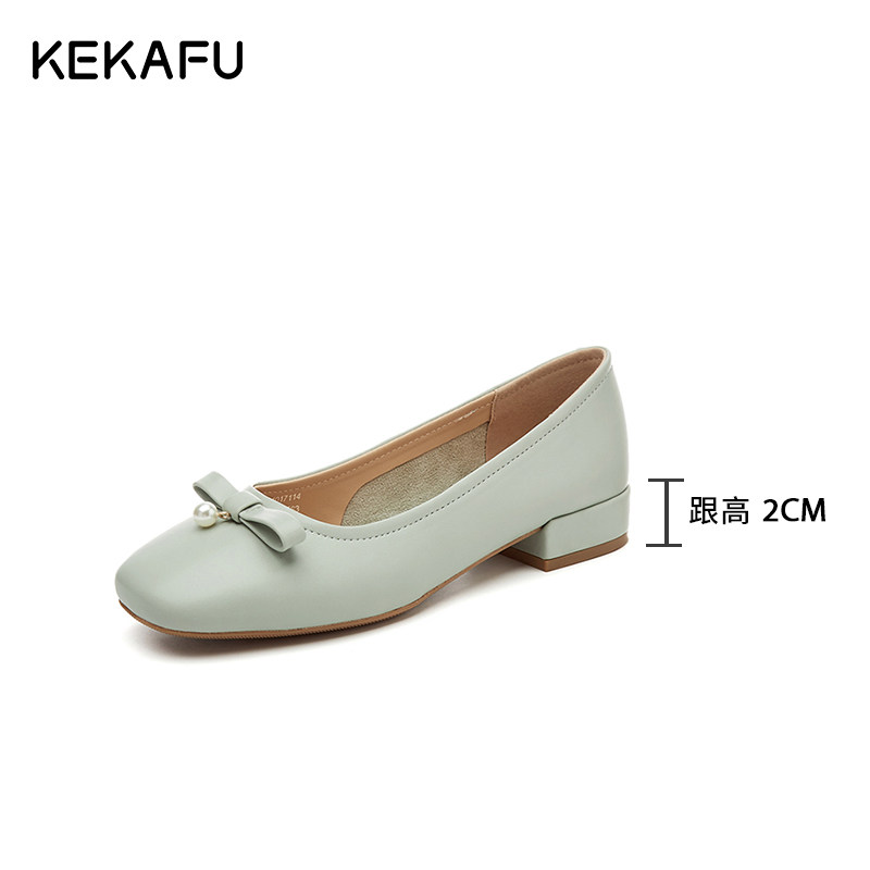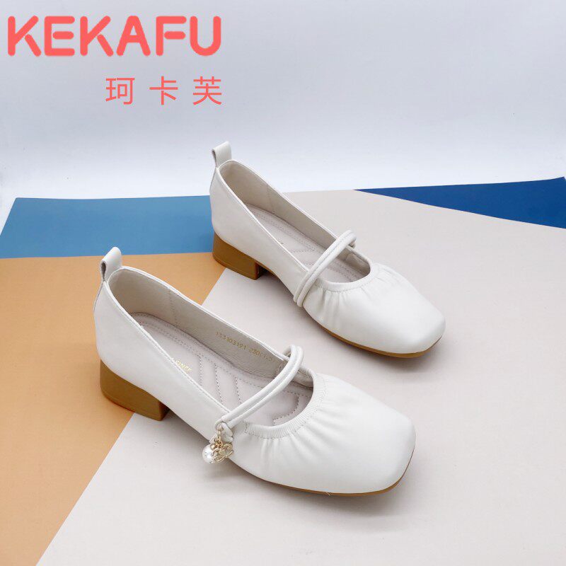 珂卡芙玛丽珍女鞋2023秋季新款方头珍珠通勤低跟不累脚气质单鞋子