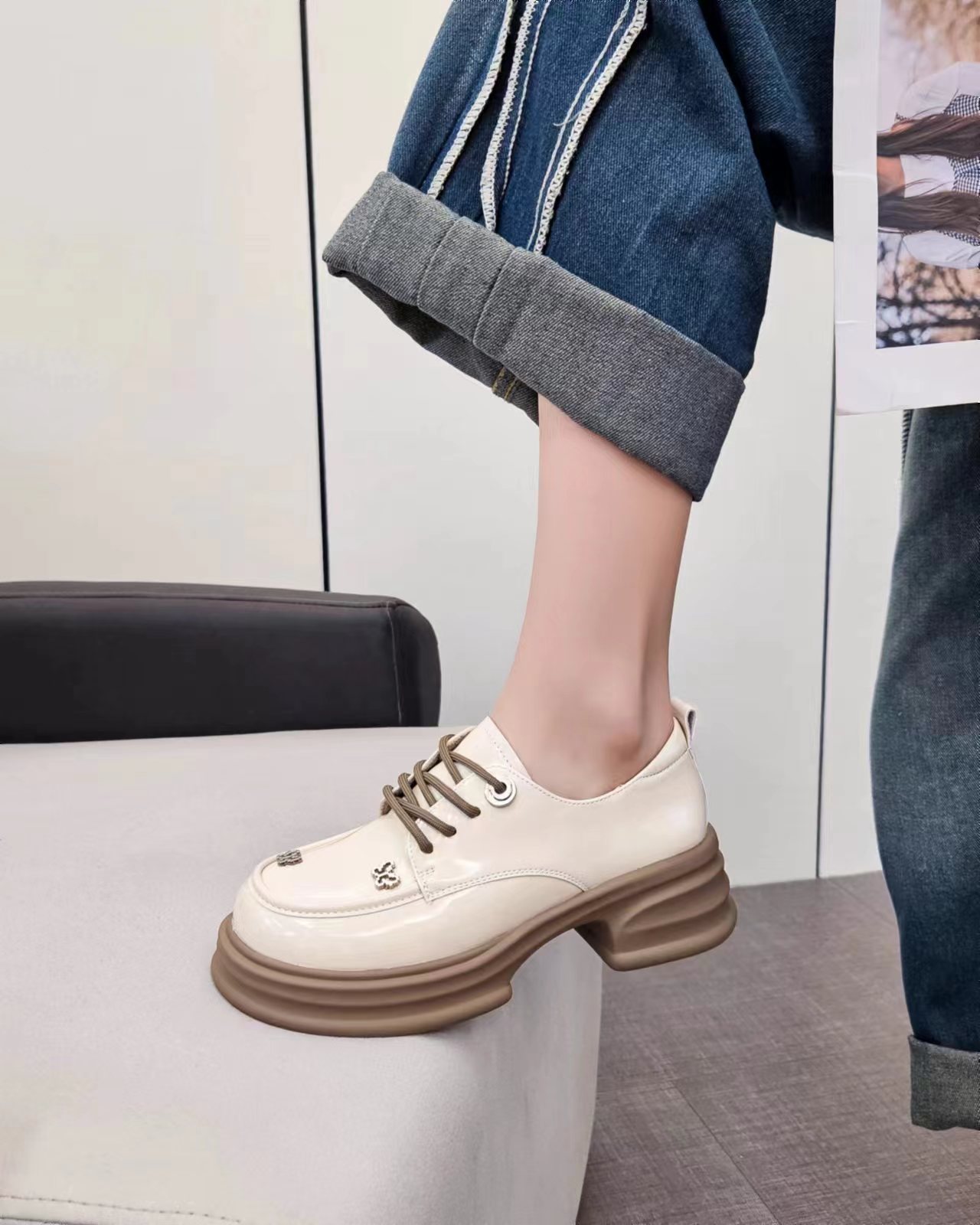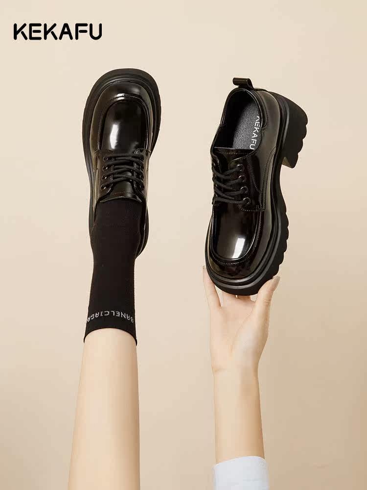 珂卡芙厚底小皮鞋女2023新款英伦风女鞋秋季单鞋女款增高乐福鞋子