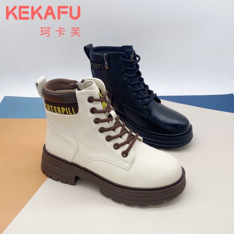 珂卡芙马丁靴女2023秋冬新款字母系带侧拉链气质百搭时尚短靴女鞋
