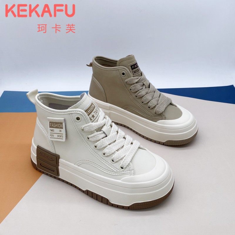珂卡芙高帮运动鞋女2023秋季新款时尚休闲橡胶底拼色高帮女靴女鞋