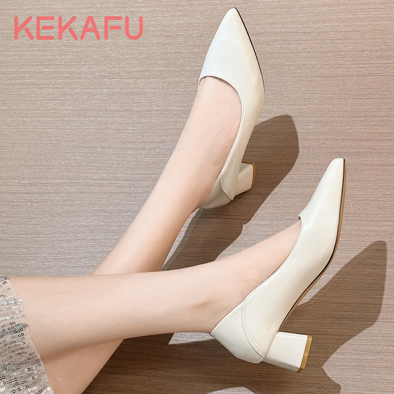 珂卡芙尖头女鞋2023年秋季新款粗跟浅口上班通勤时尚百搭职业跟鞋