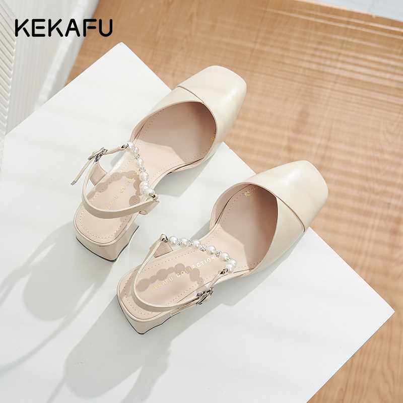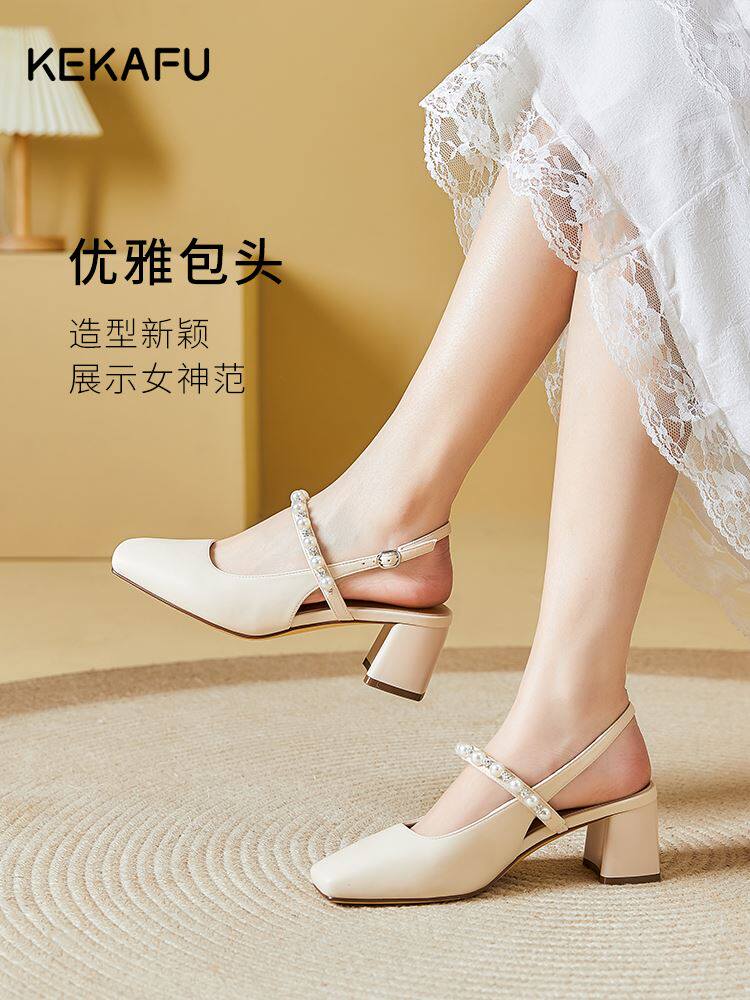 珂卡芙包头凉鞋女2023年新款气质软底法式玛丽珍女鞋夏款高跟鞋女