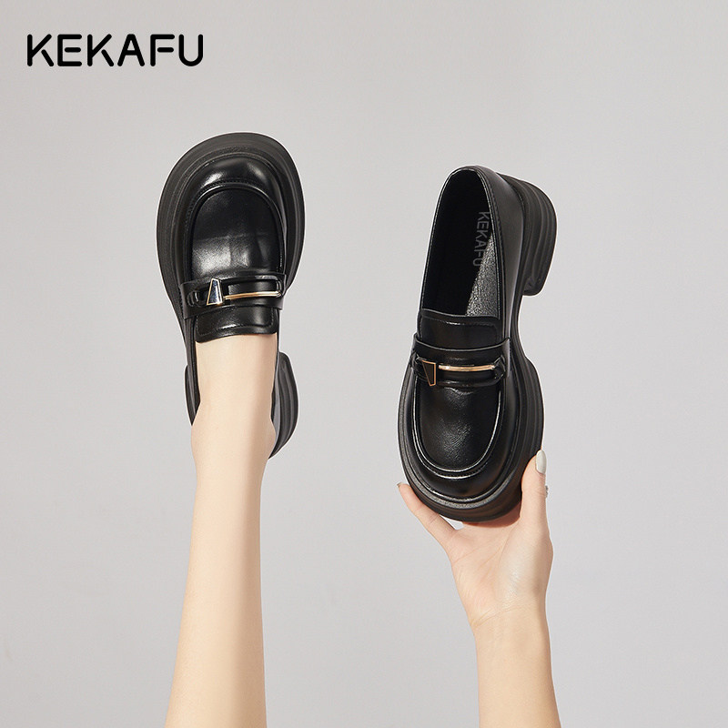 珂卡芙厚底乐福鞋女2023秋季新款英伦风小皮鞋百搭黑色单鞋女鞋子
