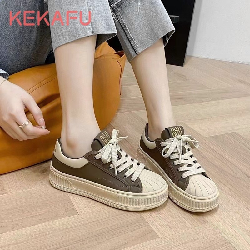 珂卡芙贝壳头板鞋女2023年冬季新款韩版休闲系带运动女鞋休闲鞋潮