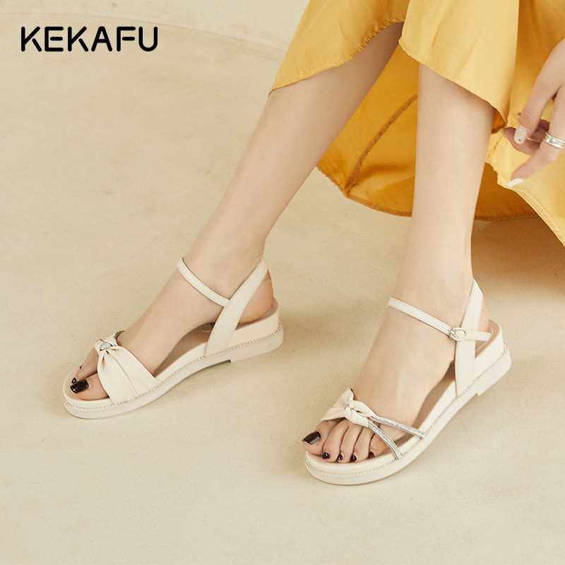珂卡芙一字带厚底凉鞋女夏坡跟2022年新款法式仙女风时尚平底女鞋