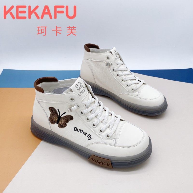 珂卡芙高帮小白鞋休闲鞋2023新款秋冬女鞋软底真皮一脚蹬平底短靴