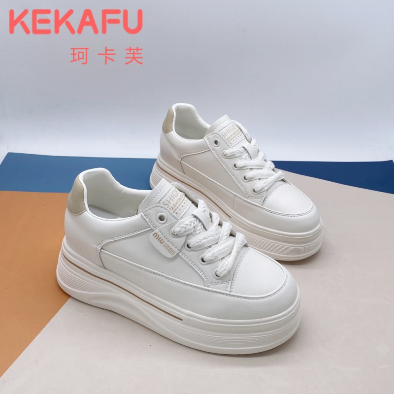 珂卡芙厚底板鞋女内增高女鞋2024春季新款小个子增高休闲小白鞋女