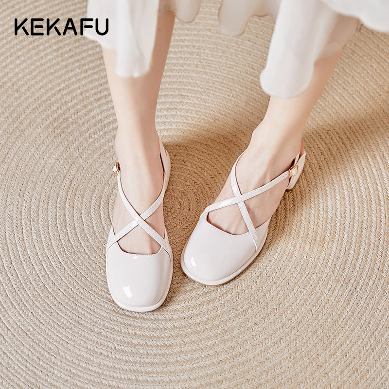 珂卡芙英伦小皮鞋女2023夏季新款低跟凉鞋包头法式玛丽珍女鞋婚鞋