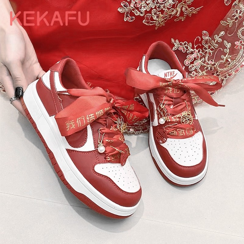 珂卡芙新娘鞋2024年春季新款平软底秀禾婚纱两用喜字婚鞋休闲鞋潮
