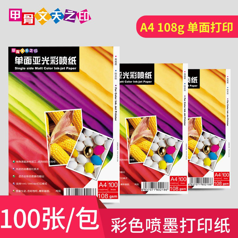 甲骨文天之印108g单面亚光彩喷专用纸A4彩色喷墨打印128g双面喷墨