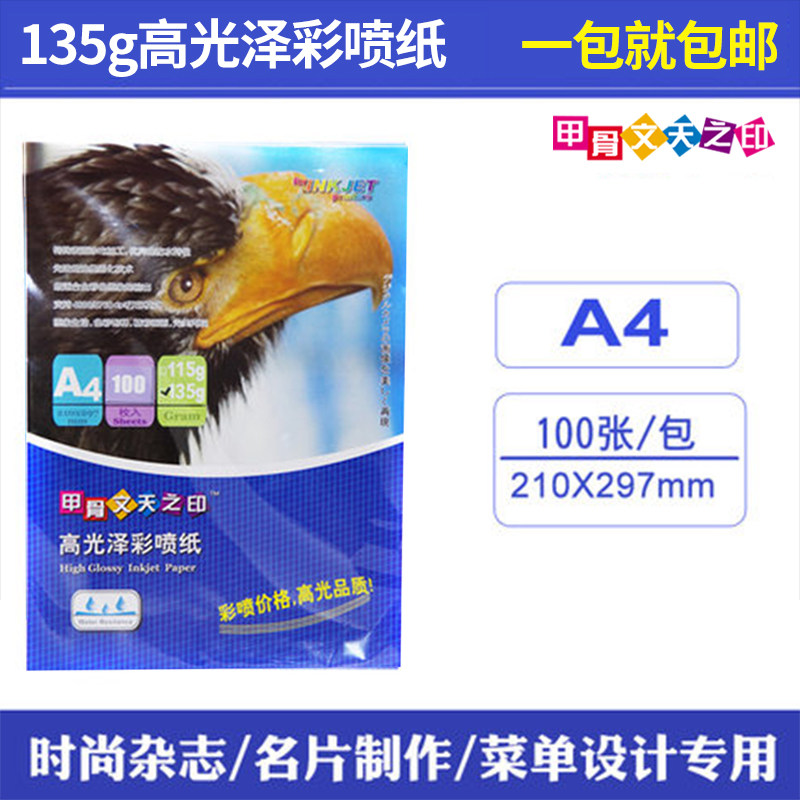 甲骨文天之印135g高光彩喷纸A4喷墨相纸胸章打印照片纸100张单面