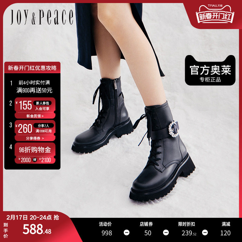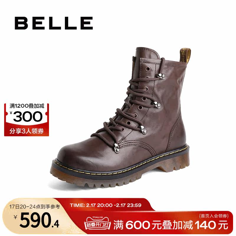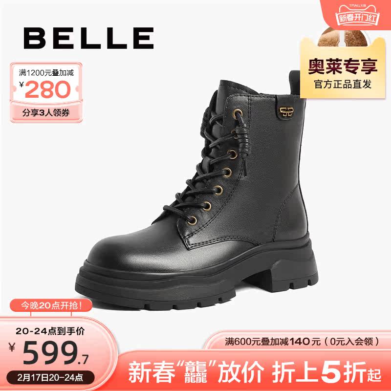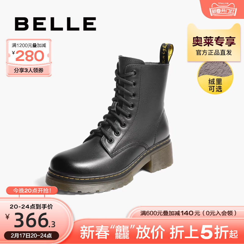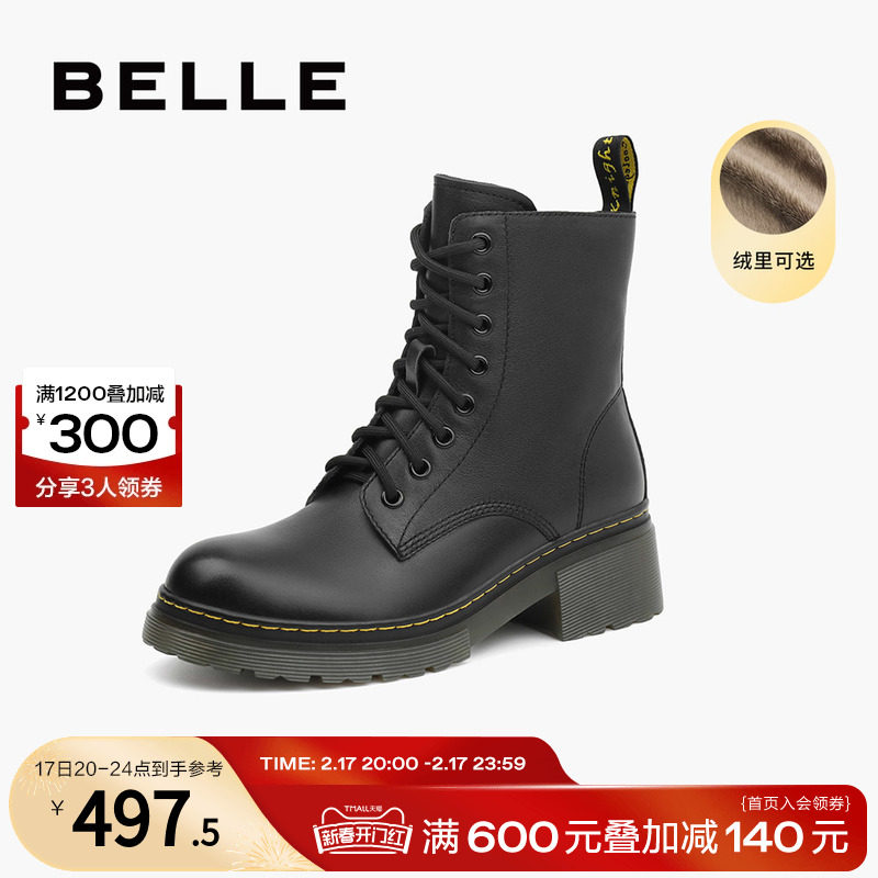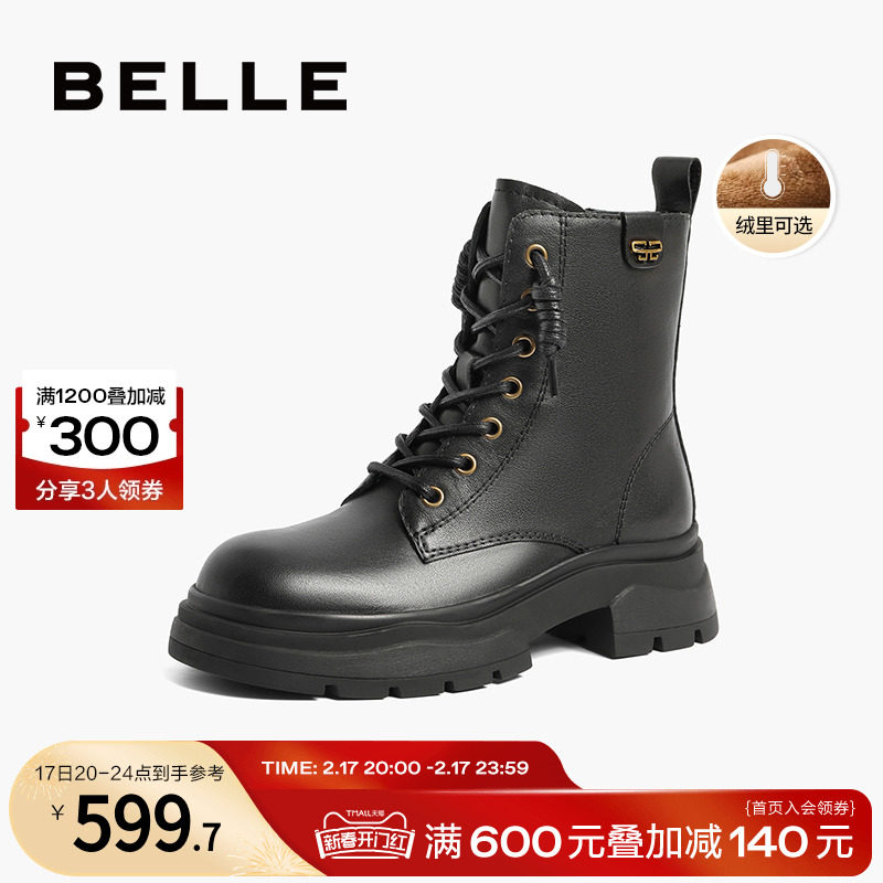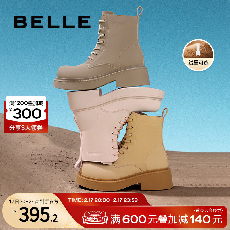 百丽复古工装靴女靴2023冬季新款靴子短靴加绒马丁靴女A2Q1DDD3
