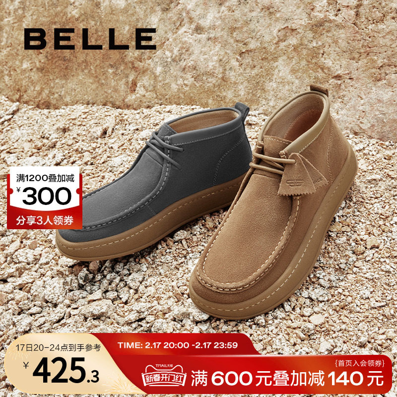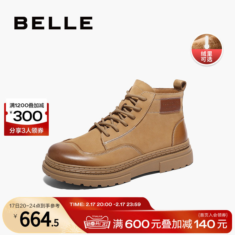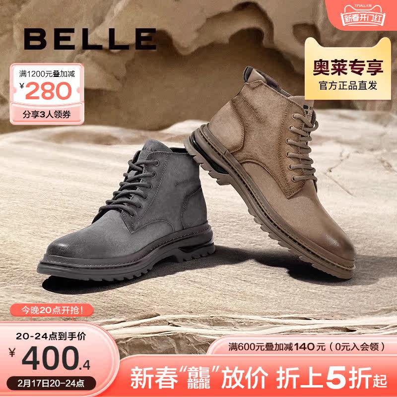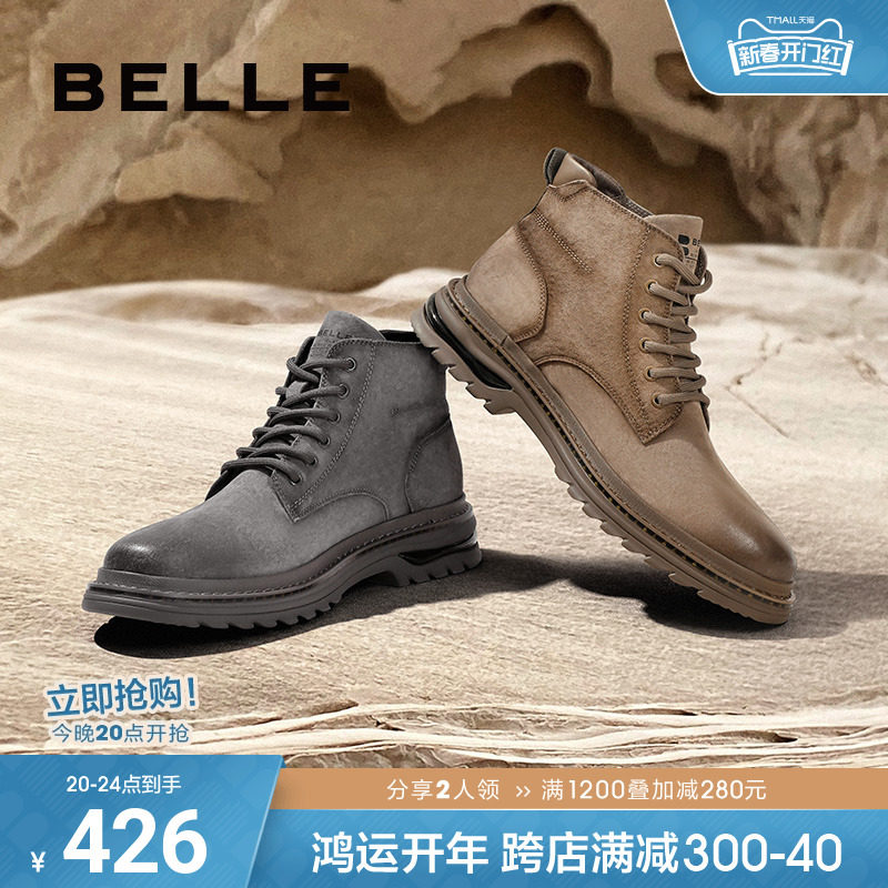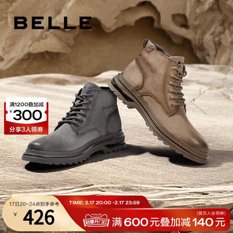 百丽复古擦色休闲靴男鞋冬季磨砂软皮户外工装靴A1262DD3