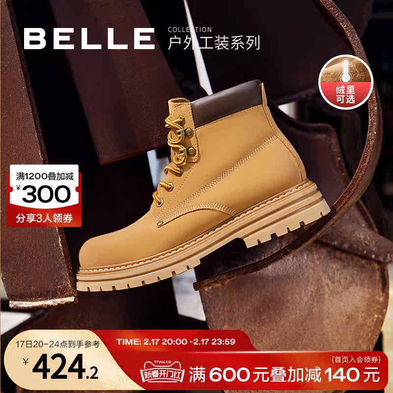 百丽马丁靴子男士男鞋秋冬商场同款休闲工装鞋加绒大黄靴7TW01DD2
