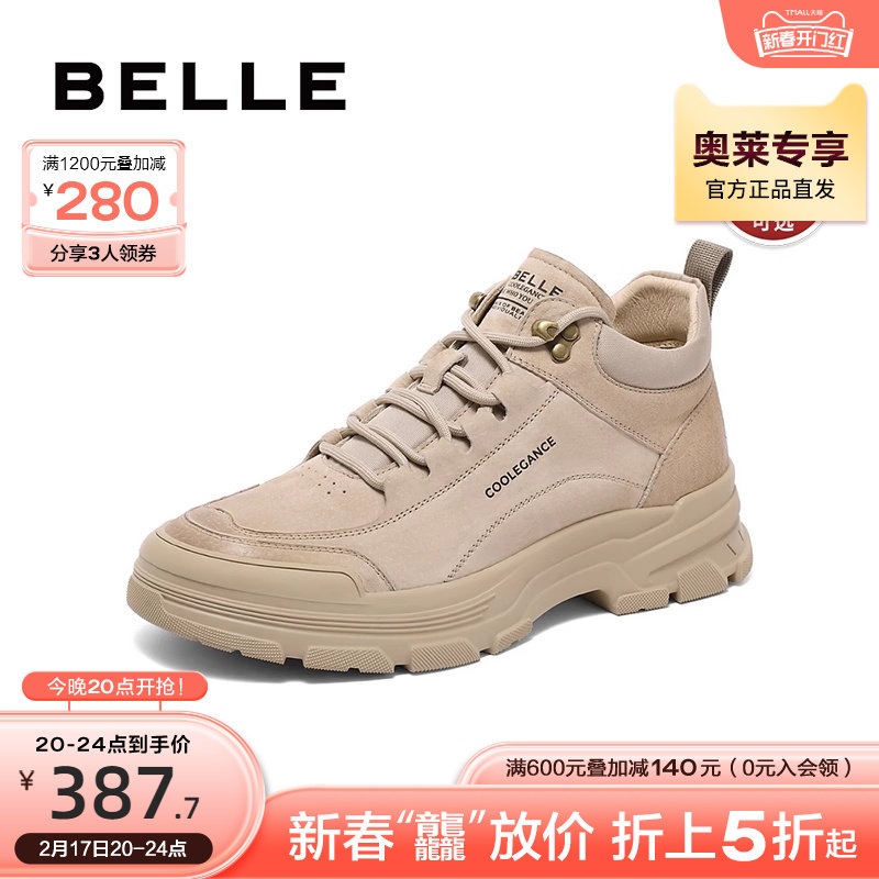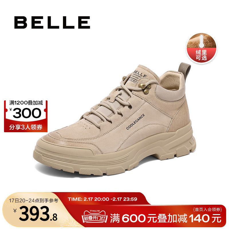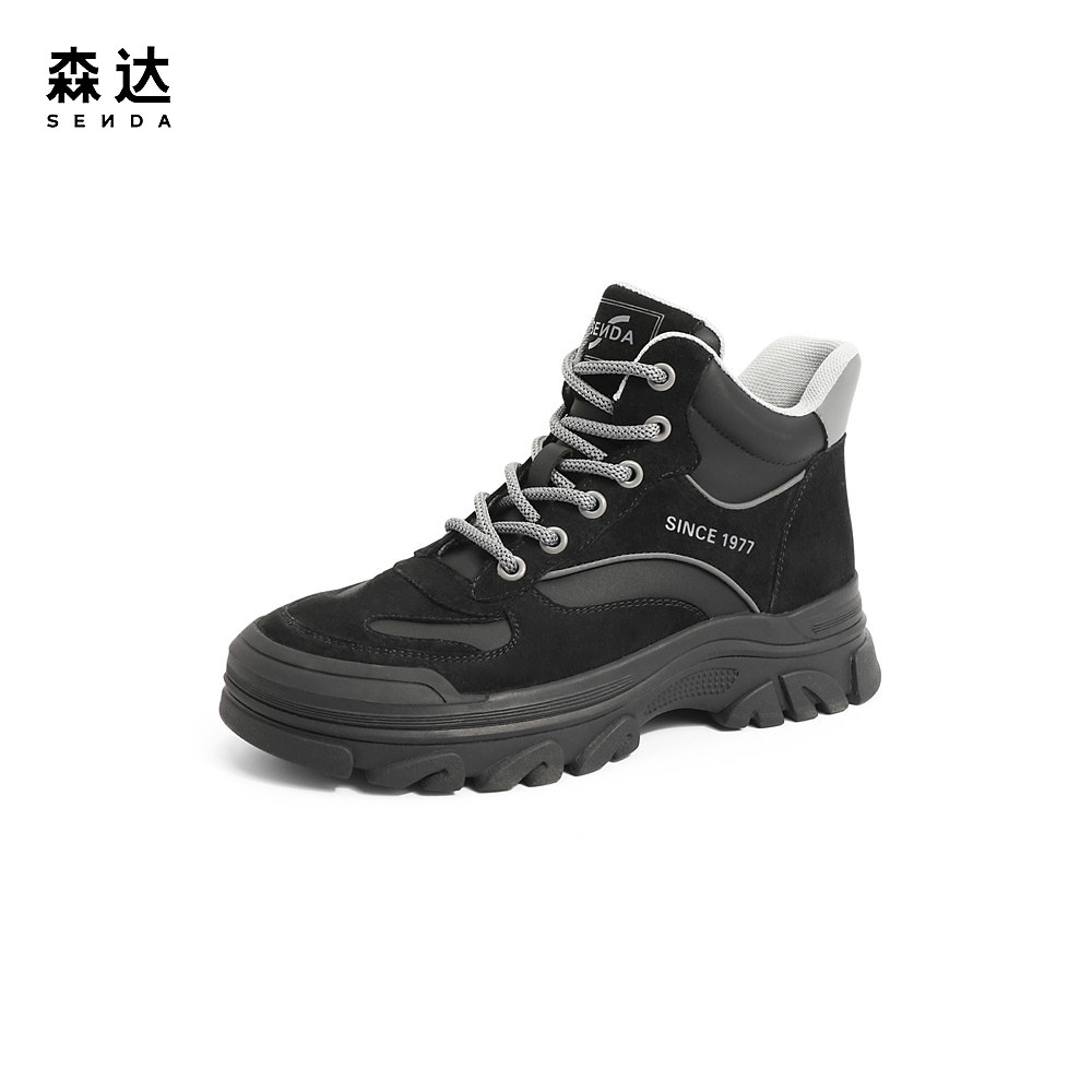 百丽男鞋休闲鞋男23冬季新款马丁靴增高工装高帮板鞋加绒8CV01DM3