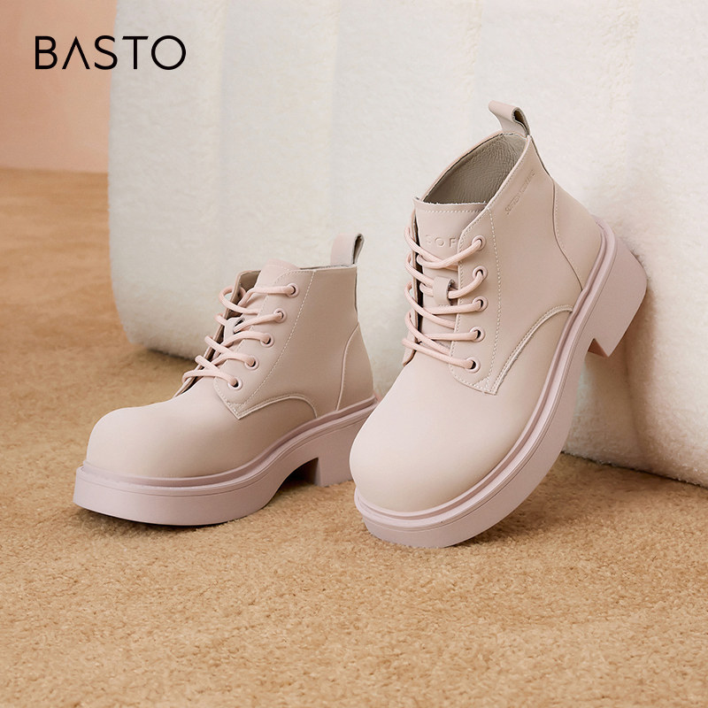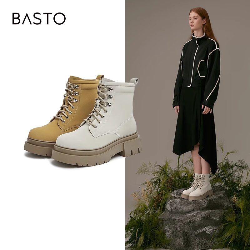 百思图冬季商场同款时尚潮酷厚底工装靴炸街马丁女短靴A8953DD2